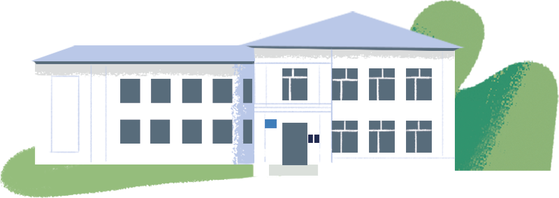 В здании школы три этажа, на первом размещены кабинеты для начальных классов, столовая, медпункт, мастерская